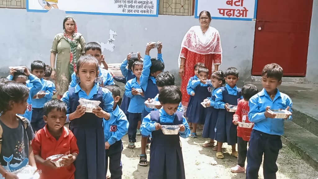 FOOD DISTRIBUTION AMONG UNDERPRIVILED CHILDREN 27.08.2025 CHILDREN AT RAJOKARI PAHARI NEW DELHI